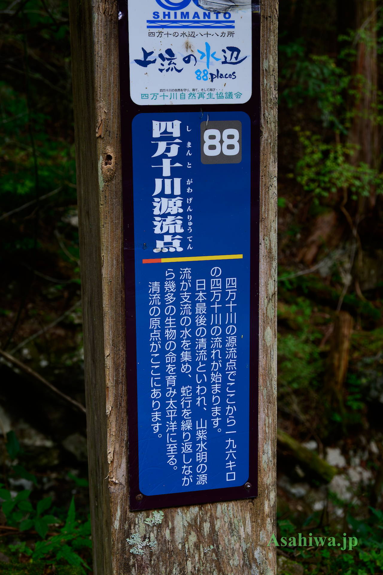 四万十川源流の碑。駐車場にある。源流点まで登れない人向け?